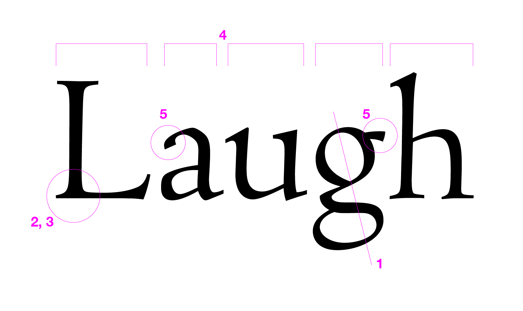 세리프 | 가로획과 세로획이 연결되는 세리프(브라켓(bracket: 까치발)), 좌우대칭이 아님 | 굵은 세로획과 가는 가로획이 세리프(브라켓) 없이 직각으로 만남 |