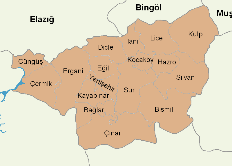 디야르바키르 주는 17개의 구로 나뉜다.