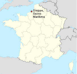 디에프는 프랑스 센마리팀 주의 해안 도시로, 영국 해협을 내려다보는 긴 절벽을 따라 건설되었다. 세 강은 도시 서쪽에 있고, 아르크 강은 도시를 관통하여 중간 크기의 항구로 흘러 들어간다. 1942년, 독일군은 해안 방어에 도움이 되도록 해안가의 몇몇 건물을 철거했고, 베르느발르-르-그랑과 바랑주빌 쉬르 메르에 두 개의 대형 포병 진지를 설치했다. 기획자들에게 중요한 고려 사항 중 하나는 디에프가 영국 공군의 전투기 작전 반경 내에 있다는 것이었다.[9]