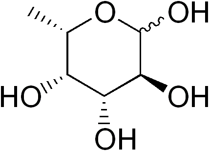 푸코스는 6번 탄소에 메틸기가 있는 디옥시헥소스의 일종으로, L-푸코스는 포유류 글리코단백질과 글리코지질에서 흔히 발견되며 세포 간 상호작용, 면역 반응 조절, 염증 반응 억제 등 다양한 생물학적 활성을 나타내는 물질이다. - 디옥시당 - 람노스