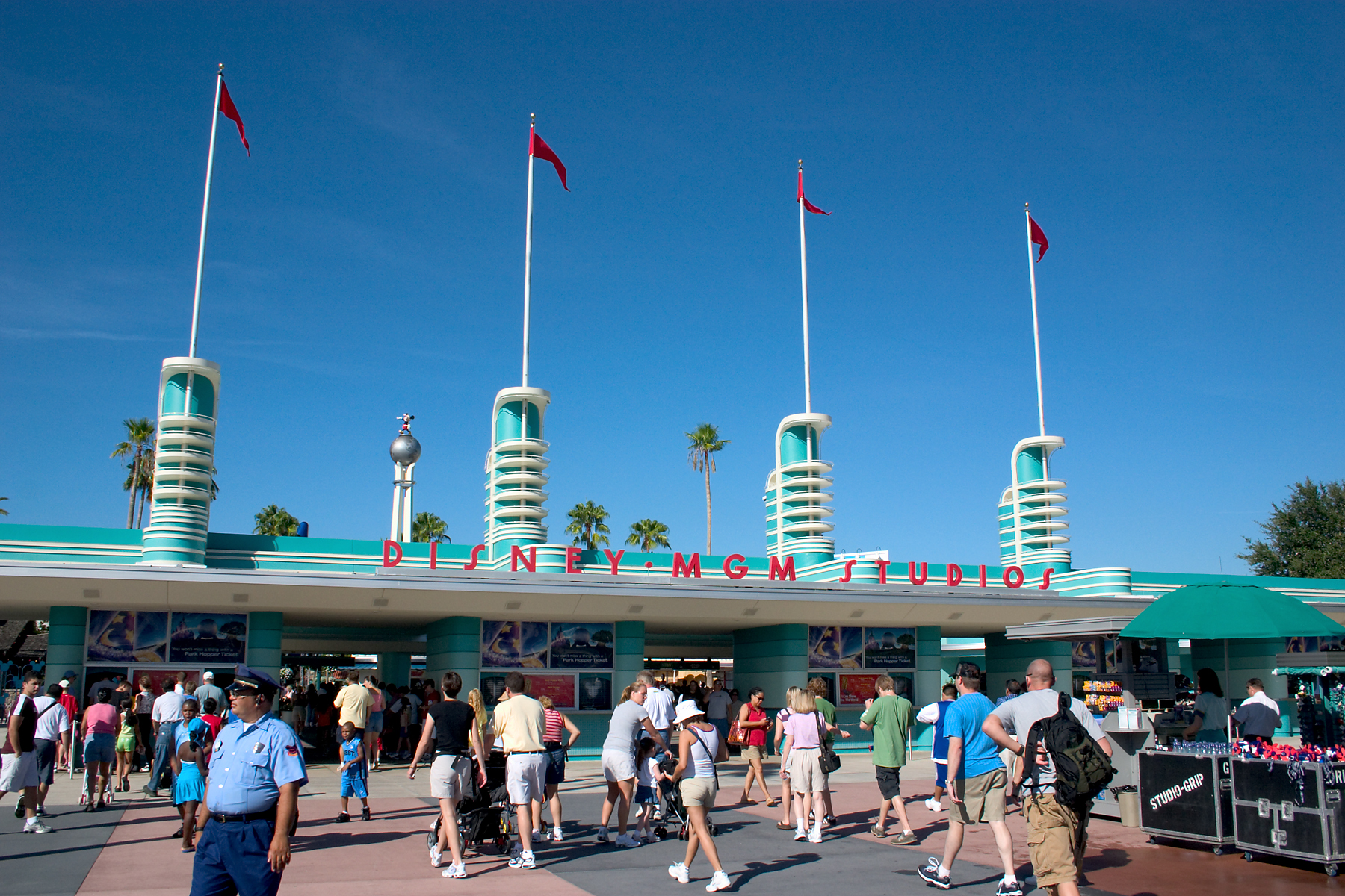 이에 따라 1985년 디즈니는 MGM과 라이선스 계약을 맺고 MGM의 이름과 로고, 일부 영화 콘텐츠를 사용할 권리를 확보하여 '디즈니-MGM 스튜디오' 건설에 착수했다.[9] 이 과정에서 MGM과의 법적 분쟁이 발생하기도 했으나, (자세한 내용은 #명칭 변경 및 법적 분쟁 참조) 1989년 5월 1일, 디즈니-MGM 스튜디오는 월트 디즈니 월드 리조트의 세 번째 테마파크로 문을 열었다. 개장 당시에는 영화 제작 과정을 보여주는 '스튜디오 백로트 투어'와 명작 영화 장면을 재현한 'The Great Movie Ride' 단 두 개의 주요 어트랙션만 운영되었다. 개장 몇 달 후에는 즉흥 연기 공연단인 '스트리트모스피어'(Streetmosphere, 현재 '할리우드의 시민들')가 추가되어 현재까지 이어지는 가장 오래된 어트랙션 중 하나가 되었다.[10]