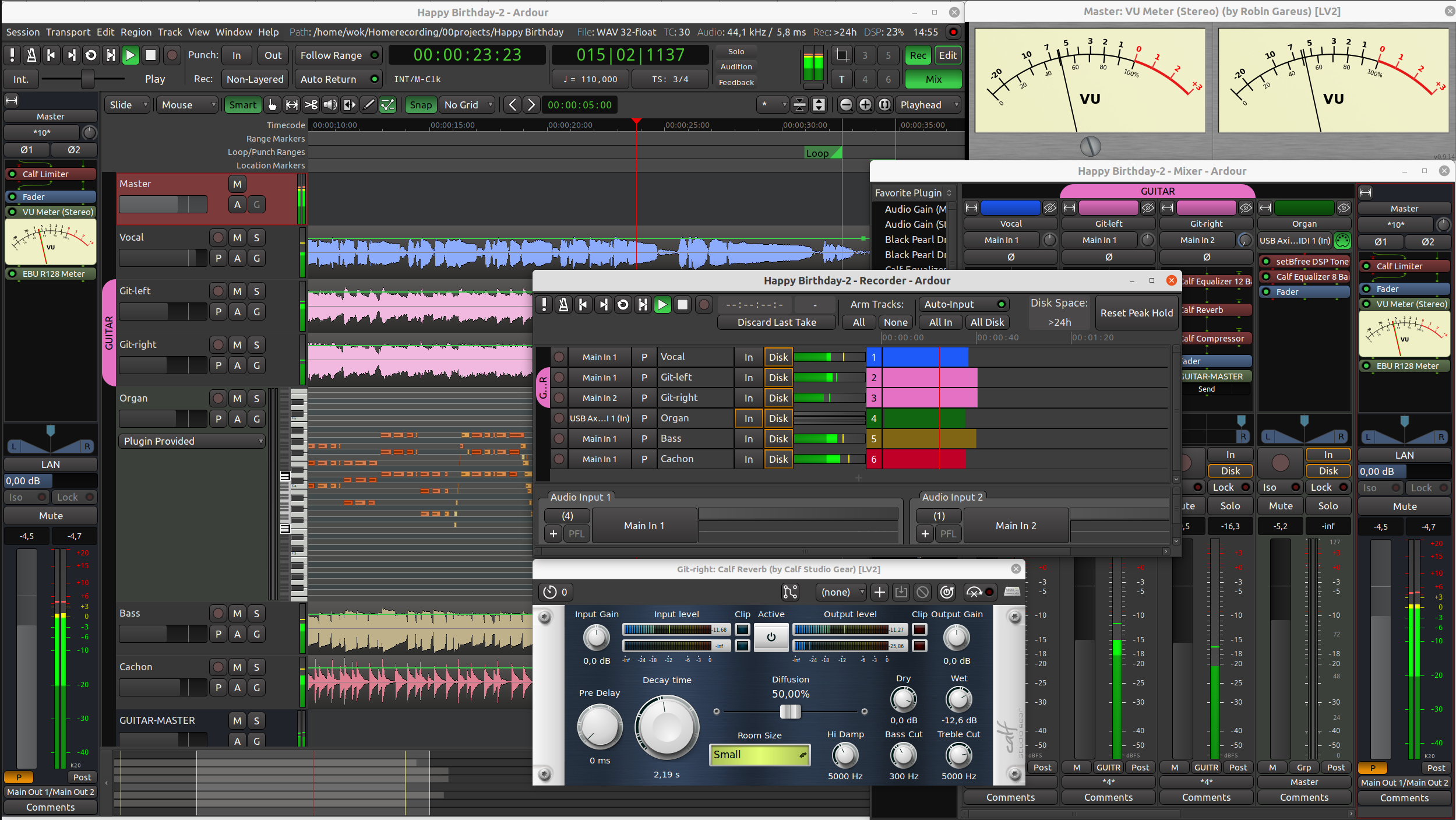 전형적인 '''소프트웨어 DAW''' (Ardour)의 스크린샷