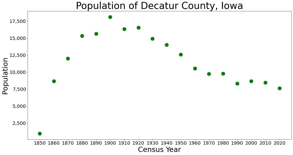 디케이터군은 아이오와주에서 가장 가난한 지역 중 하나로 여겨지며, 주민의 거의 20%가 빈곤 속에 살고 있는 것으로 보고되었다.[15]