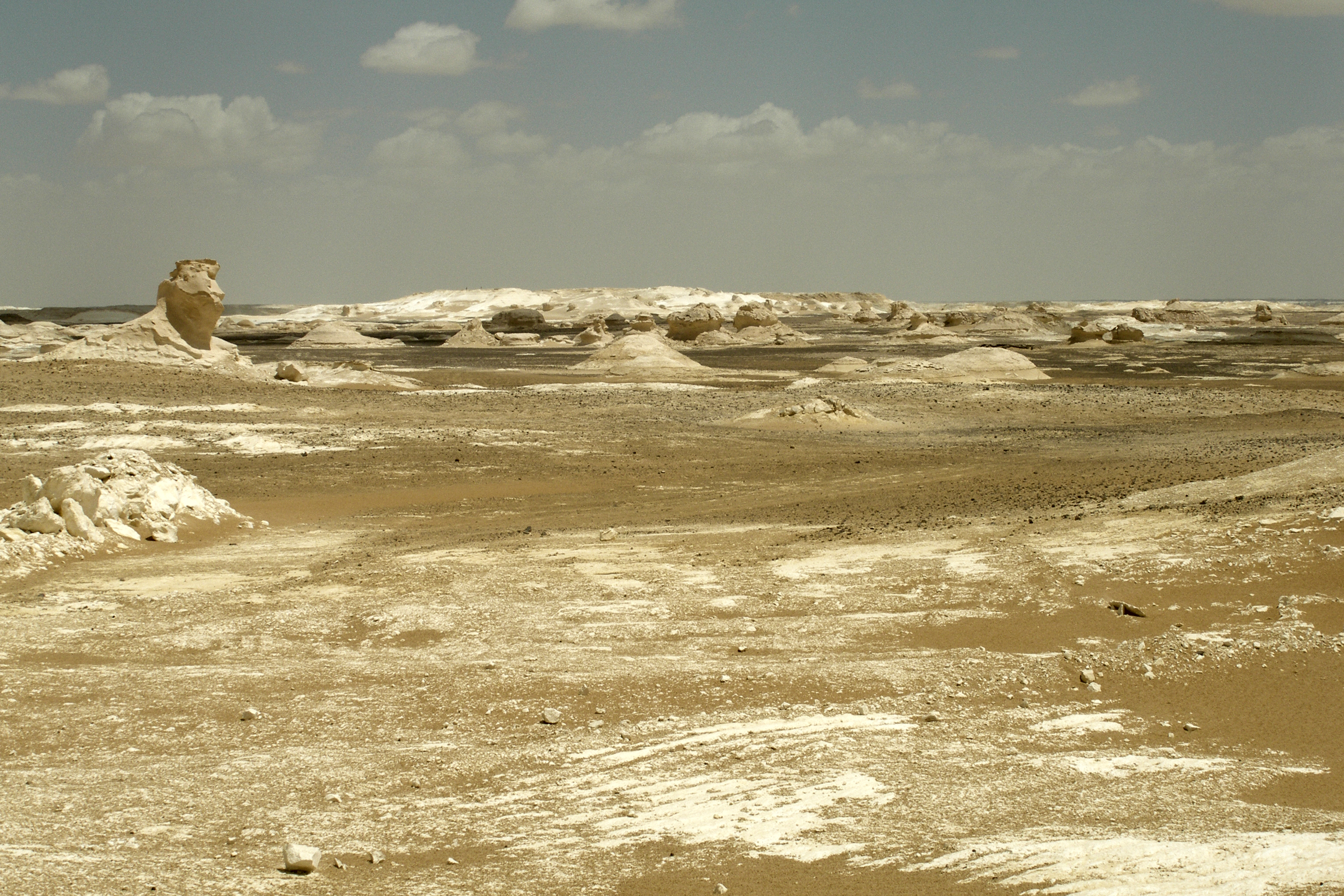 - 사막: 사막은 일반적으로 연간 강수량이 25cm 미만인 건조한 기후를 가진 지역이다. 지구 육지 면적의 약 5분의 1을 차지하며 매우 덥거나 매우 추울 수 있다(극지 사막 참조). 사막에는 가뭄에 견딜 수 있도록 진화한 동물과 식물이 서식한다. 사막에서는 대부분의 침식이 흐르는 물에 의해 발생하는데, 일반적으로 격렬한 뇌우 동안 발생하는 산사태가 원인이다. 사막은 과도한 삼림 벌채와 과방목으로 인한 사막화로 인해 확장되고 있다.[115][49]