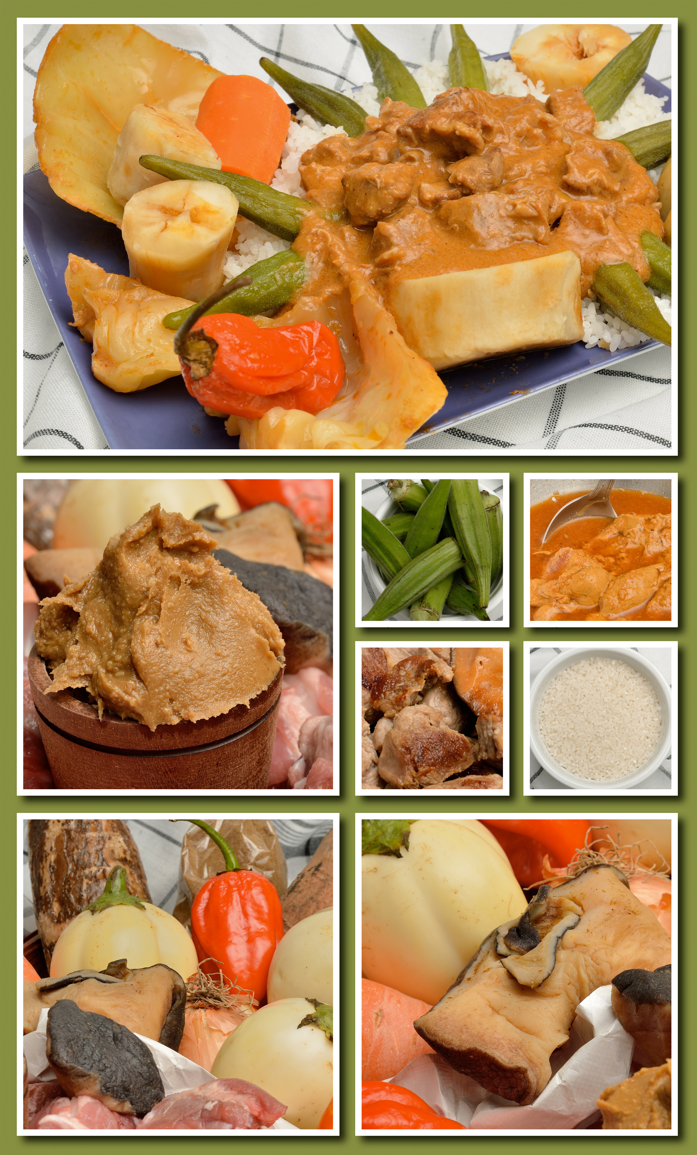 땅콩 스튜는 지역에 따라 다양한 조리법으로 만들어진다. 일반적으로 닭고기, 토마토, 양파, 마늘, 양배추, 잎채소 또는 뿌리채소를 넣는다. 오크라, 옥수수, 당근, 계피, 고추, 파프리카, 후추, 강황, 커민 등 다양한 향신료를 사용하기도 한다.
