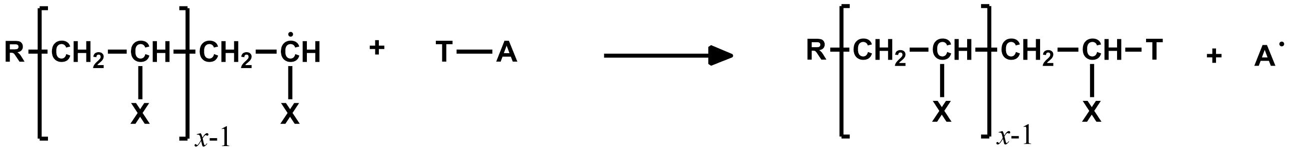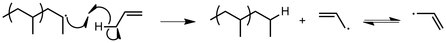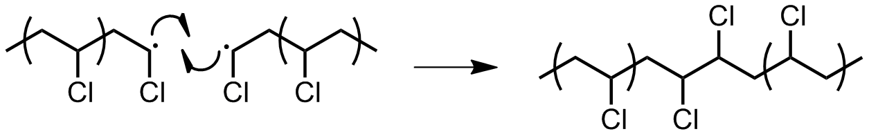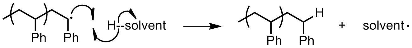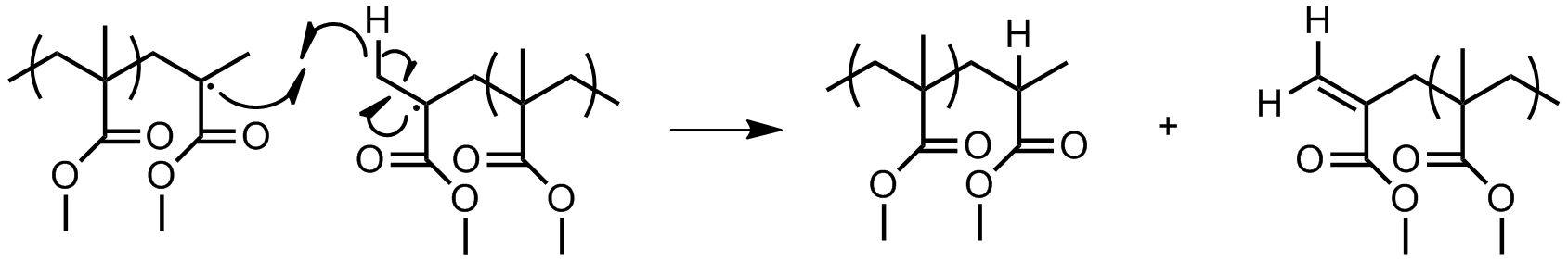 • '''종결'''은 성장 라디칼이 비활성화되는 단계로, 대부분 라디칼이 소멸하는 반응이다. 일반적인 종결 반응은 두 라디칼이 재결합하는 재결합 종결과, 두 라디칼이 수소 라디칼을 주고받는 불균등화 종결이 있다.