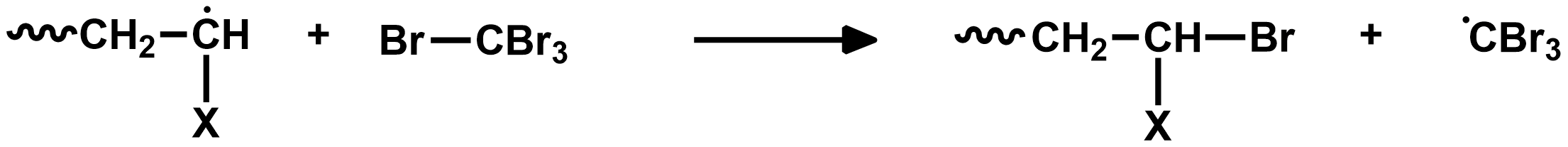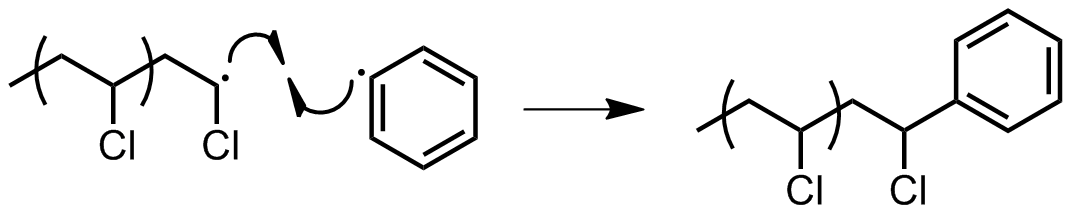 : 염화 바이닐의 라디칼 중합은 단량체로의 사슬 이동에 의해 결정된다. 분자량은 개시제 농도에 영향을 거의 받지 않고, 중합 온도에 의해 조절된다. 염화 바이닐과 같은 단량체에는 ATRP를 적용할 수 없어 다른 중합 반응 조절 방법이 사용된다.