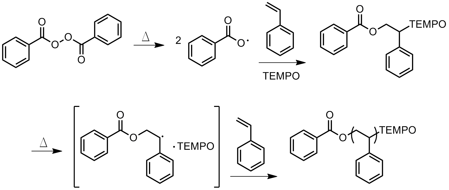 : 나이트록사이드 매개 자유 라디칼 중합은 중합 시작이나 중간에 안정한 나이트록사이드 라디칼을 첨가하여 사슬 이동을 제한하고 분자량이 높은 폴리(염화 바이닐)을 합성하는 방법이다.