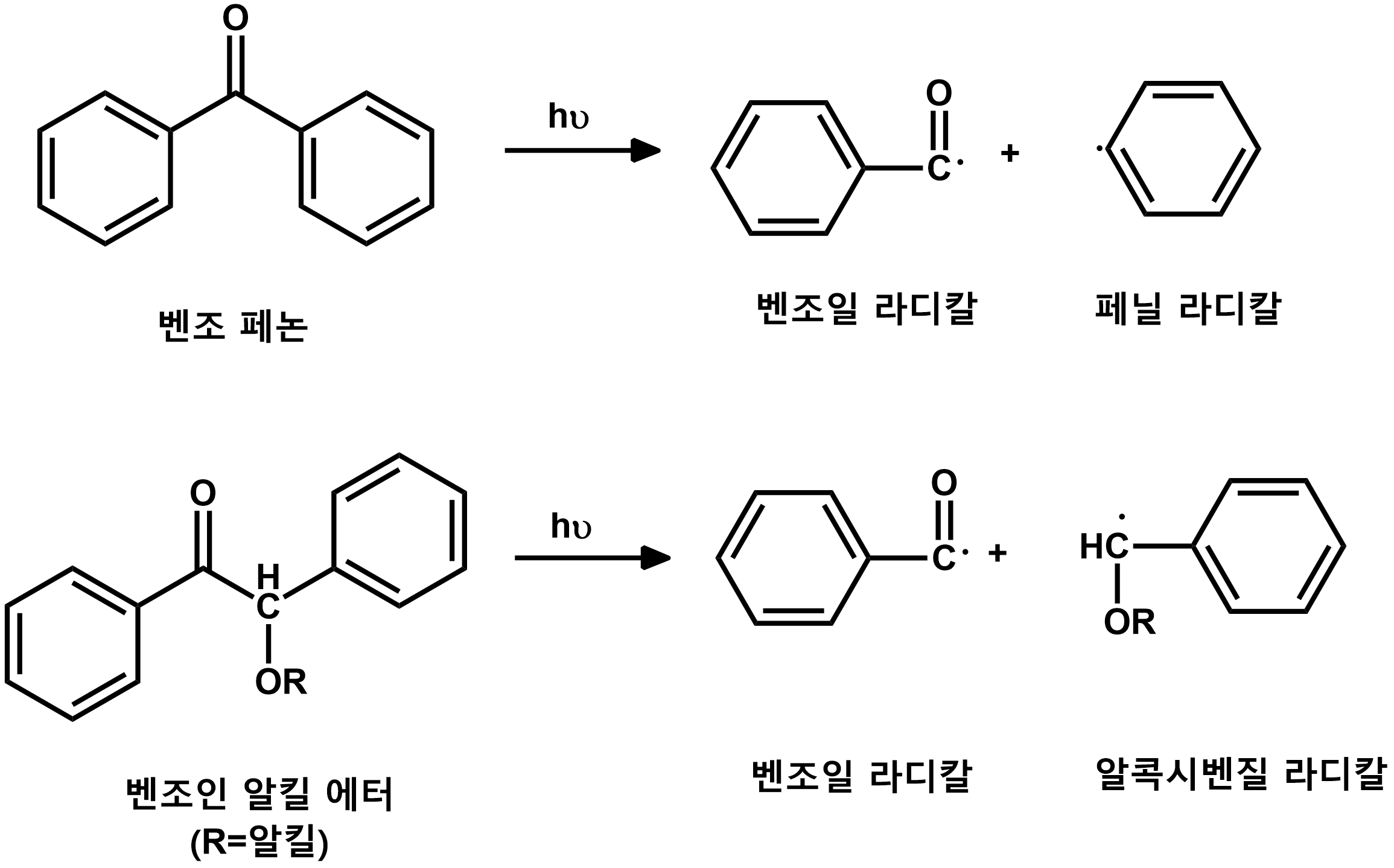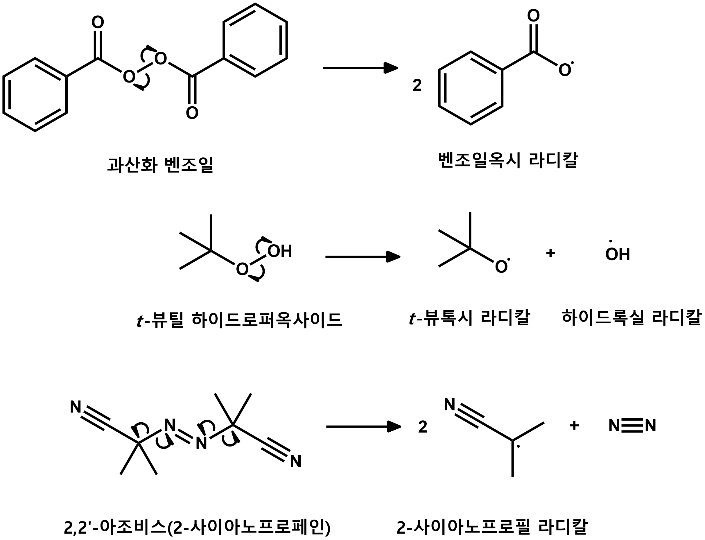 개시제는 다양한 방법으로 자유 라디칼을 생성할 수 있다.