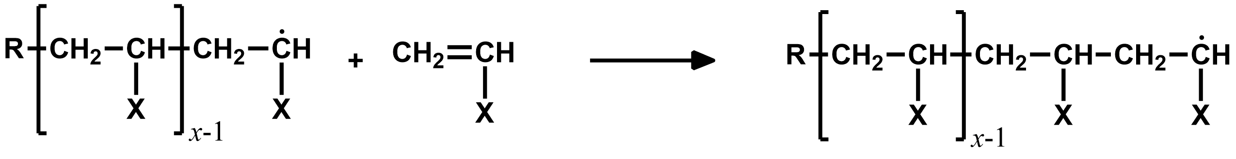 전파단량체가 라디칼 사슬 말단에 첨가되어 사슬이 성장함.