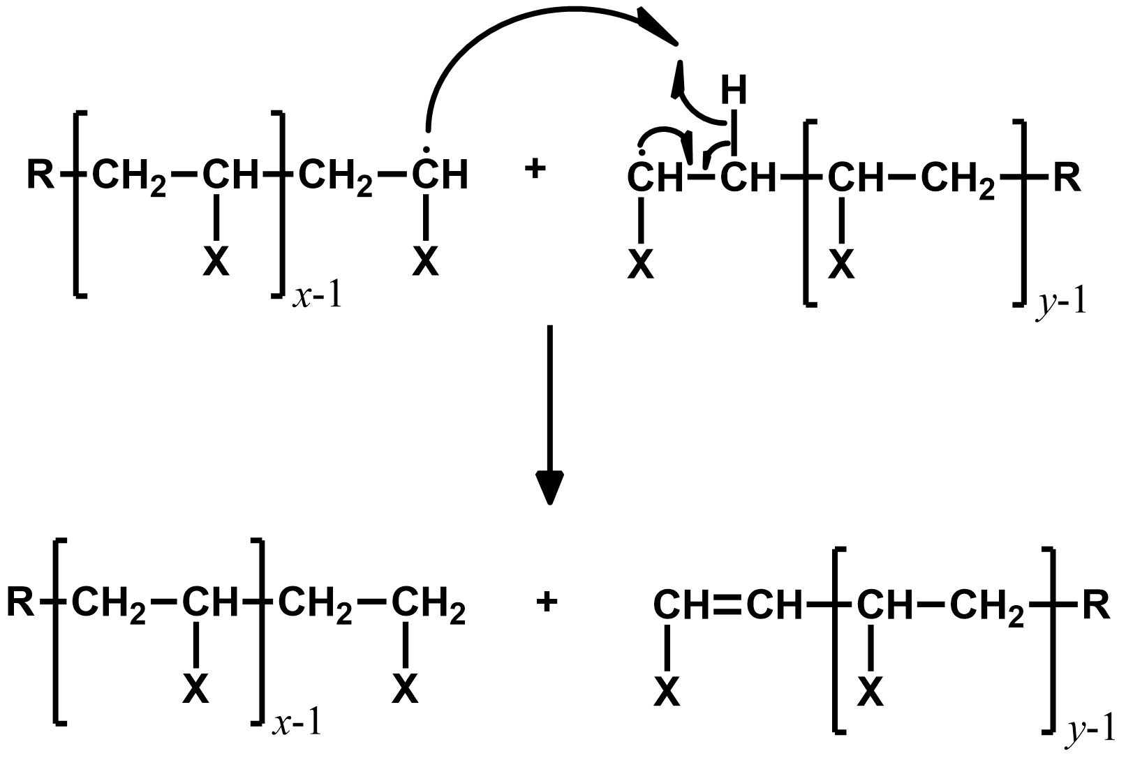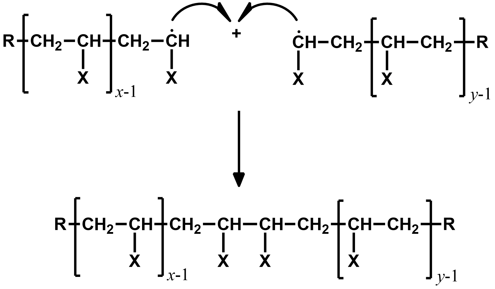 종결라디칼 사슬 간의 결합 또는 불균등화 반응으로 중합이 종료됨.