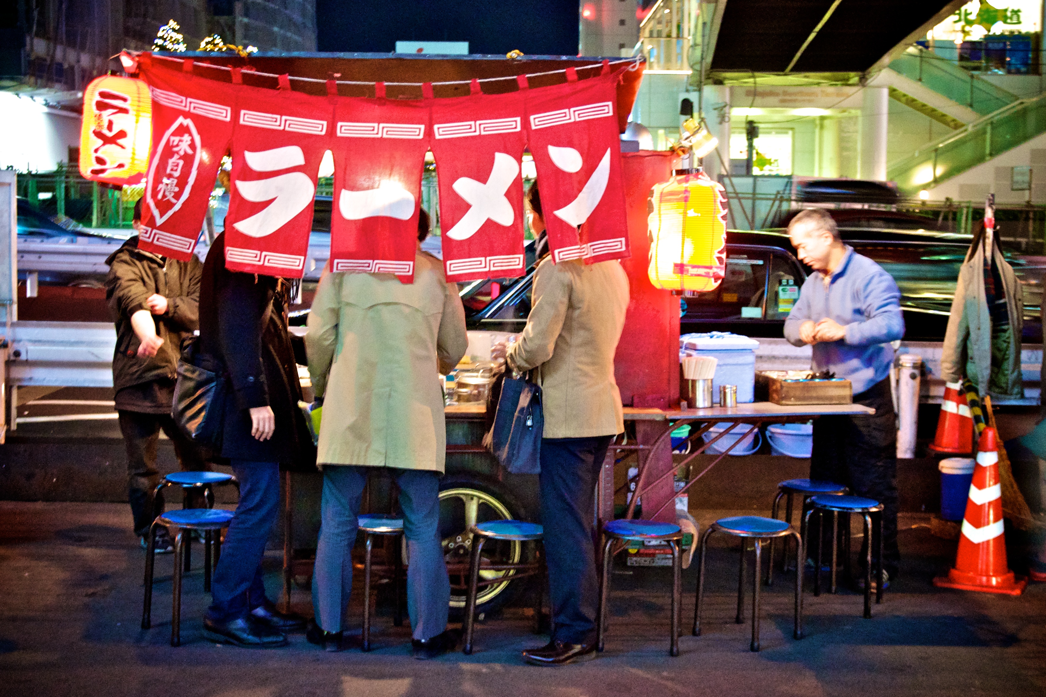 태평양 전쟁 후, 중국 대륙에서 귀환한 사람들에 의해 라멘 포장마차가 많이 등장하면서 라멘이 대중화되기 시작했다.[65] 1950년에는 밀가루 교환 통제가 해제되고 음식 판매 제한이 완화되어 라면 판매상의 수가 더욱 증가했으며, 심지어 사기업들은 면, 고명, 그릇, 젓가락으로 구성된 야타이 시작 키트를 대여하기도 했다.[11]