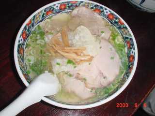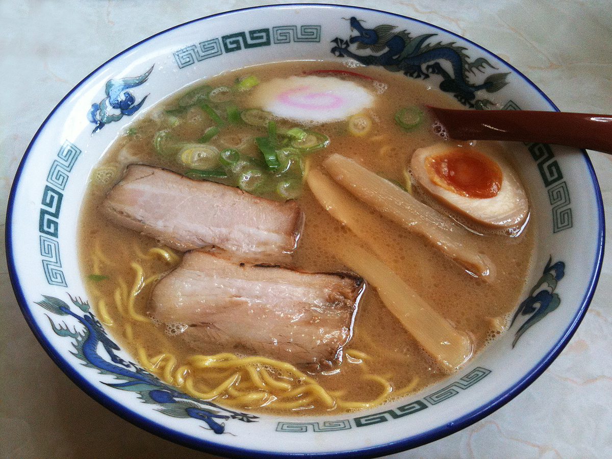 - 돼지백탕(ブタパイタン) 육수(돈코츠 육수): 돼지 뼈를 강한 불로 끓여 골수의 지방과 콜라겐을 우려낸다. 지방이 유화되어 탁하게 보인다. 후쿠오카현 구루메시(久留米市)에서 기원하여 북부 규슈에 전파되었다고 알려져있다.