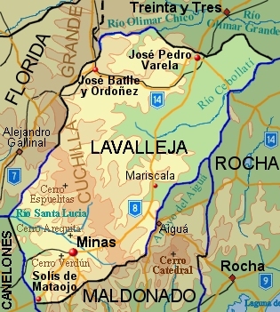 Solís de Mataojo|솔리스 데 마타호es는 라바예하 주 남서쪽에 위치한 도시이다. 2011년 인구 조사 기준 인구는 2,825명이다.[4]4. 1. 4. 호세 바틀레 이 오르도녜스 (2,203명)