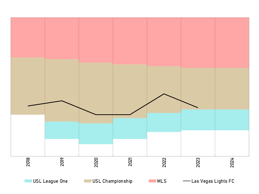 라스베이거스 51s(라스베이거스 에비에이터스)는 2019년에 서머린의 새 경기장으로 이전하면서 라이츠가 Cashman Field의 유일한 임차인이 되었다.[38][39] 라이츠는 2019 시즌 전에 라커룸과 경기장 사무실을 개조하기 시작했으며, 축구 전용 경기장으로 만들기 위한 추가 계획을 세웠다.[40] 시 정부는 또한 MLS 확장 팀을 수용하기 위해 라스베이거스 시내에 더 큰 축구 전용 경기장을 건설할 방안을 모색하기 시작했다.[41]