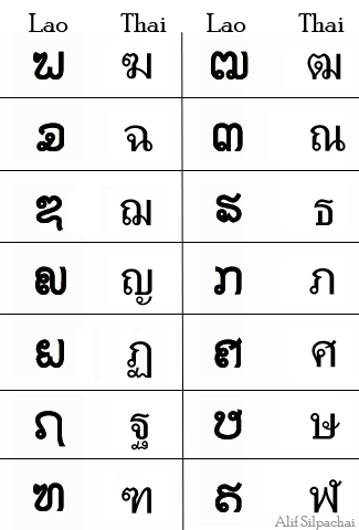 현재 사용하지 않는 이 라오 문자는 한때 팔리어산스크리트어에서 파생된 단어를 표기하는 데 사용되었지만, 제거되어 자음 목록을 줄이고 태국어와 라오어 간의 철자 유사성을 감소시켰다.