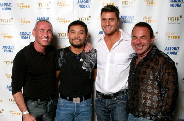 (왼쪽부터) 돈 노르테, 친구, 렘쿨, 케빈 노르테가 웨스트할리우드에서 열린 GLAAD 연례 여름 행사에서 함께한 모습