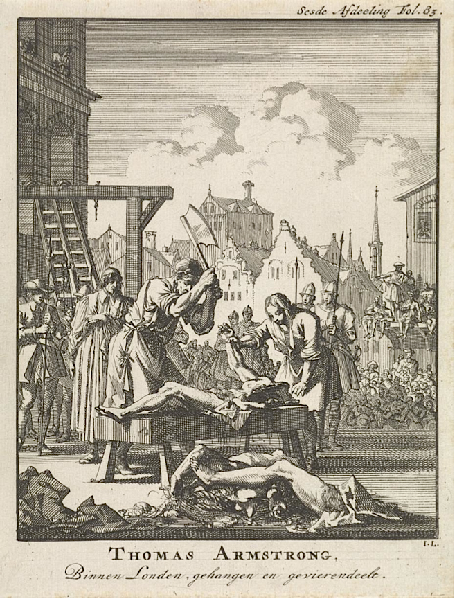 토머스 암스트롱 경은 음모와 관련하여 반역죄로 교수, 거열형을 당했다