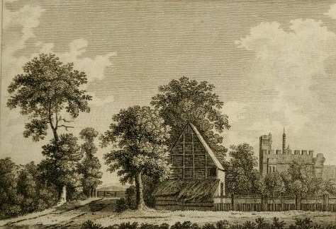 1777년 판화에 묘사된 라이 하우스. 도로 건너편의 문은 이 경로 사용에 대한 통행료를 나타낸다. 도로 오른쪽에 있는 넓은 부지에는 다양한 건물들이 있었다. 성벽이 있는 벽돌 문루는 15세기에 지어졌다.