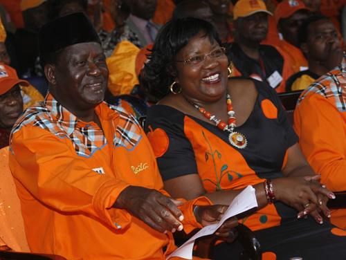2012년 10월 시노베이트 조사에 따르면, 오딩가는 우후루 케냐타와 윌리엄 루토를 상대로 45%의 지지율을 기록하며 선두를 달렸다.[58]오딩가의 정당인 오렌지 민주 운동(ODM)은 칼론조 무시요카의 와이퍼당, 모세스 웨탕굴라의 포드 케냐(FK)와 함께 CORD 연합(개혁과 민주주의를 위한 연합)을 결성하여 대통령 선거에 참여했다. 오딩가는 대통령 후보, 칼론조는 러닝메이트로 출마하여 주빌리 연합(우후루 케냐타의 국민동맹, 윌리엄 루토의 연합 공화당, 채리티 응길루의 국가 레인보우 연합, 나지브 발랄라의 공화당 의회)과 맞붙었다.