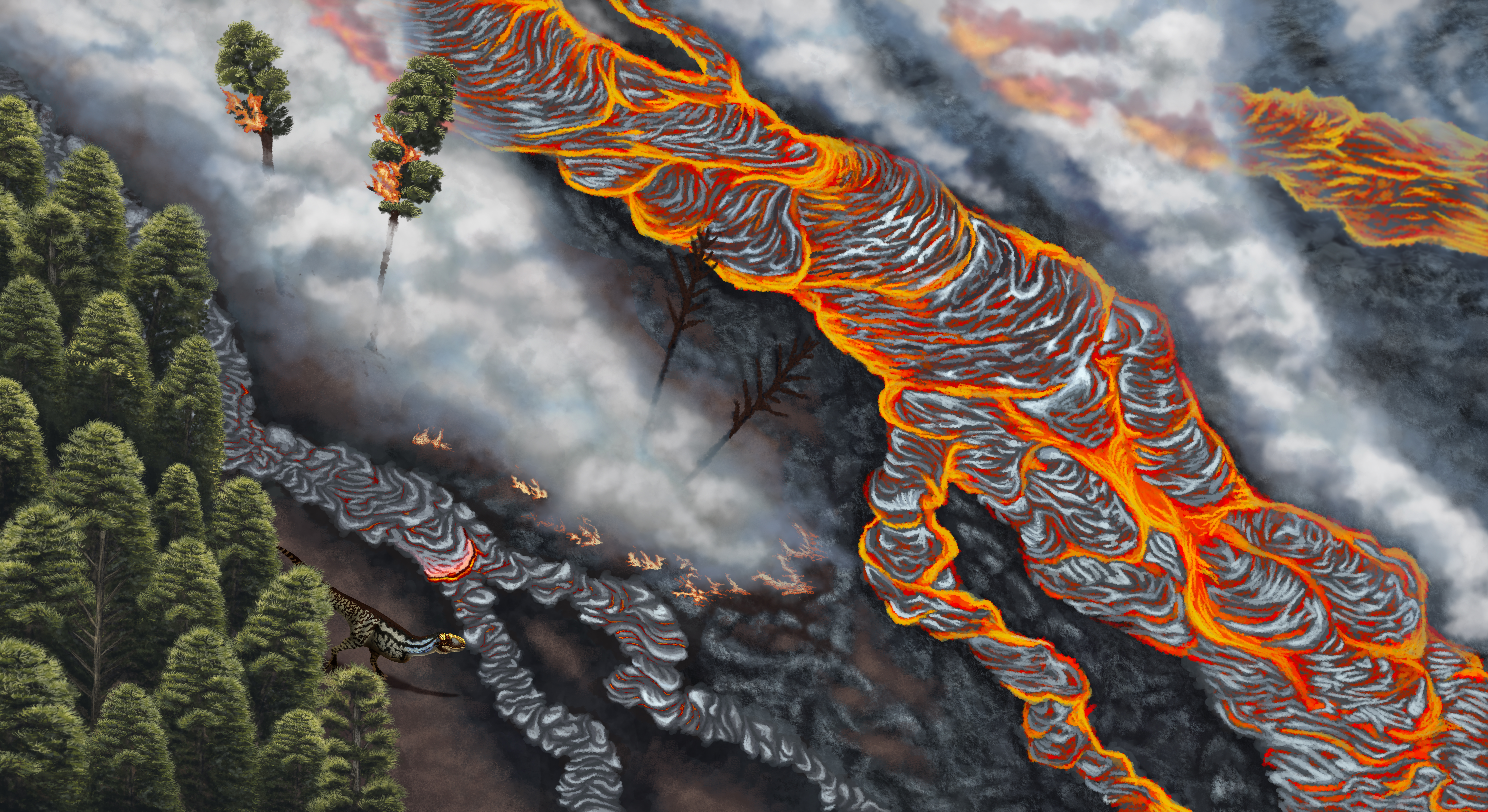 인도의 공룡은 아마도 백악기-고생대 경계 35만 년 전의 화산 활동으로 인해 모두 멸종되었을 것이다. 공룡은 아마도 화산 균열 분출과 용암류 지역을 피했을 것이다.[28]