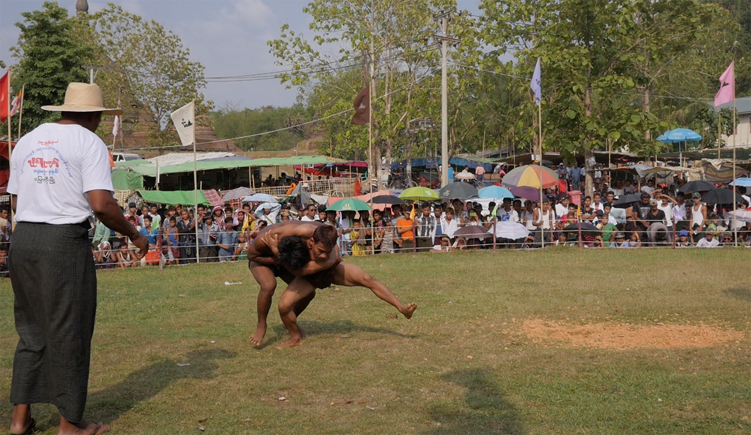 - 킨 레슬링(Kyin): 킨 레슬링은 라카인족 사이에서 중요한 문화적 행위인 전통 레슬링의 한 형태이다. 주요 행사 기간에 경기가 열리며, 참가자들은 경기 시작 전에 "킨 퀸(kyin kwin)"이라는 준비 운동 춤을 선보인다.[40]