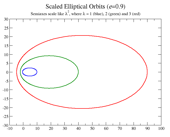 따라서 에너지 가 음수이면(결합 궤도), 이심률은 1보다 작고 궤도는 타원이다. 반대로, 에너지가 양수이면(비결합 궤도, "산란 궤도"라고도 함[1]), 이심률은 1보다 크고 궤도는 쌍곡선이다.[1] 마지막으로, 에너지가 정확히 0이면 이심률은 1이고 궤도는 포물선이다.[1] 모든 경우에, 의 방향은 원뿔 곡선의 대칭 축을 따라 있으며, 힘의 중심에서 근점, 즉 가장 가까운 접근점 쪽을 가리킨다.[1]