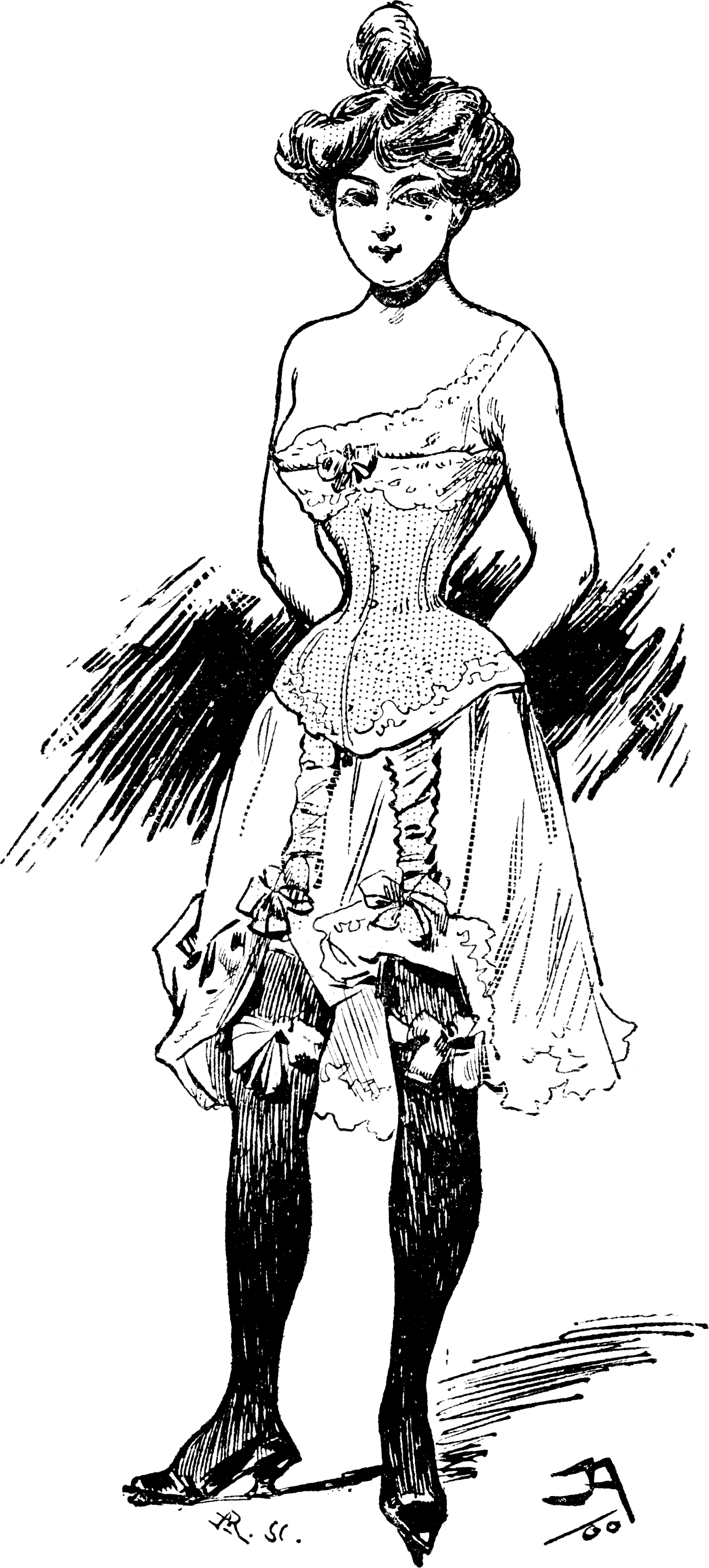 - 셔미즈: 직선으로 늘어지는 소매 없는 드레스와 모양이 같은 원피스 속옷으로, 베이비돌과 비슷하지만 엉덩이 주위에 더 가깝게 맞는다.
