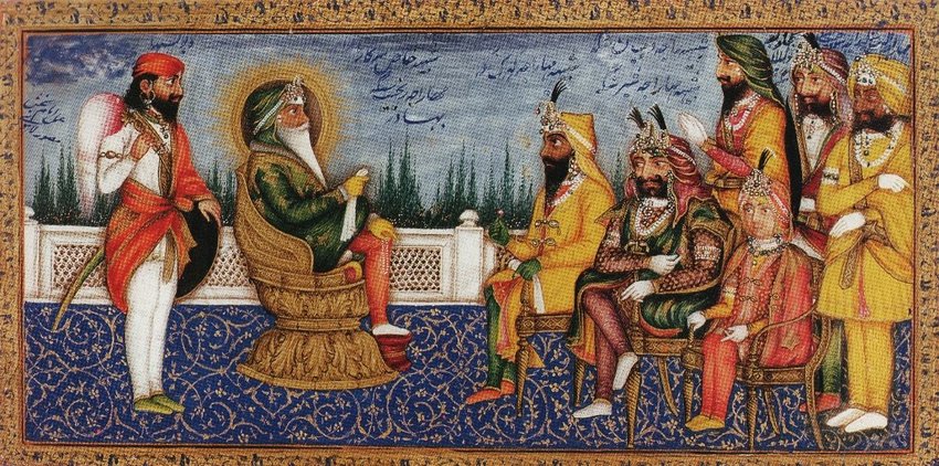 란지트 싱은 1797년 아프가니스탄 아브달리 왕조 샤 자만의 펀자브 병합 시도에 맞서 싸우면서 명성을 얻기 시작했다. 1798년 암리차르 전투에서 승리하고,[27] 1799년에는 라호르를 점령했으며, 1800년에는 잠무 지역의 지배권을 양도받았다.[21] 1801년, 란지트 싱은 "펀자브의 마하라자"로 공식 즉위하고, '나낙샤히'라는 새로운 동전을 발행했다.[22][27][23][24]