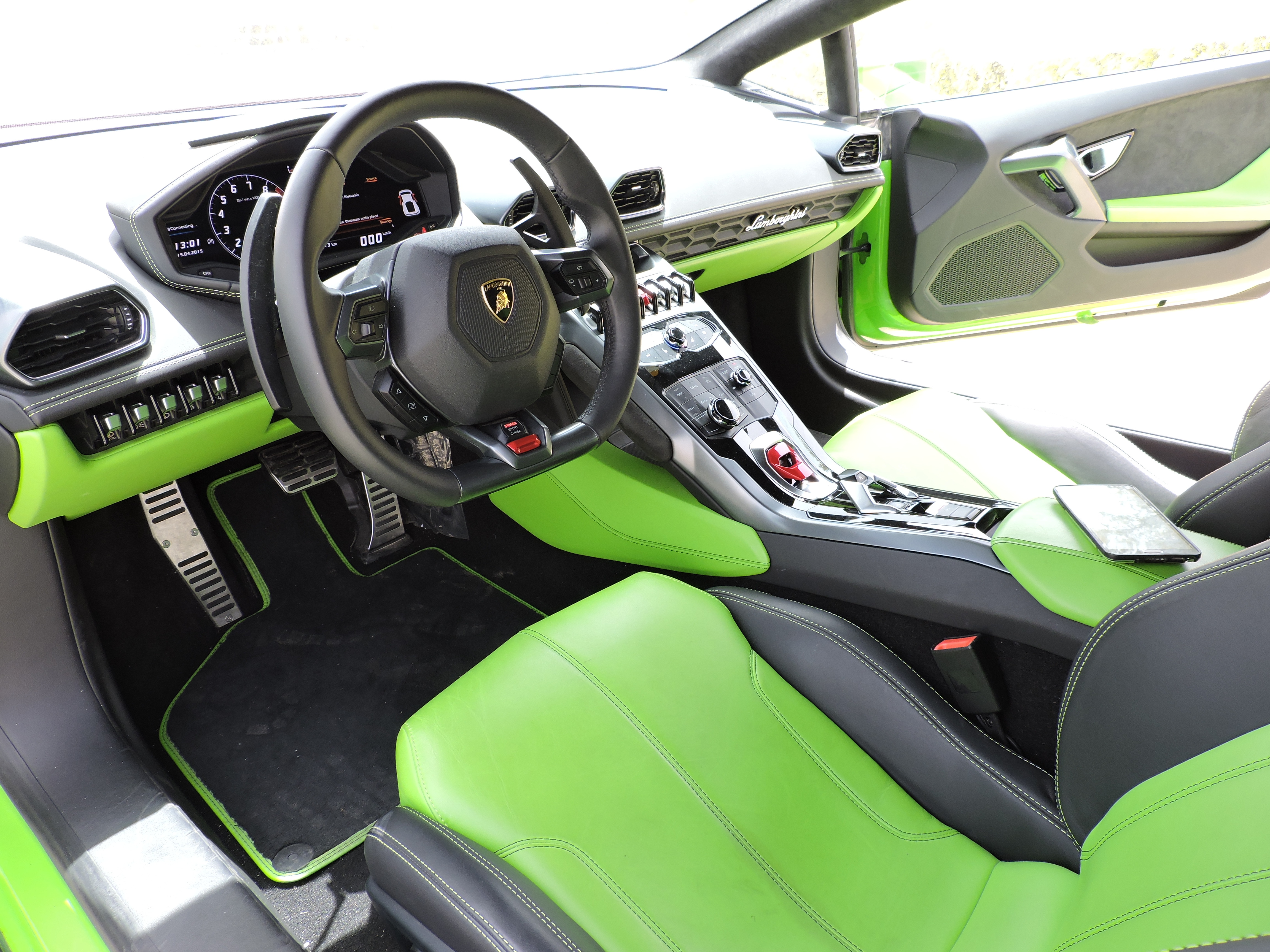 우라칸은 차량 내부의 편안함을 향상시키기 위한 다양한 인테리어 옵션을 갖추고 있다. 표준 길이 정렬 및 전동식 등받이 외에도 스포츠 시트의 완전 전동 제어 및 열선 기능을 선택할 수 있다. 또한, 이 차량은 선택 사양으로 내비게이션 시스템과 가죽 내장재를 제공한다.[29] 우라칸은 람보르기니 인포테인먼트 시스템을 적용하여 센터 스택에서 인포테인먼트 시스템을 제거한 최초의 스포츠카 중 하나이다. 그 결과 운전자가 보고 싶은 것을 결정할 수 있는 디스플레이가 제공된다. 이 차량은 모회사인 아우디에서 제공하는 12.3인치 TFT 버추얼 콕핏을 사용하는 최초의 람보르기니 자동차이다.[31] 이 시스템은 고화질(1440 x 540[32]) 3차원 컴퓨터 그래픽스, 블루투스, 구글 어스 GPS 내비게이션 및 멀티 미디어 인터페이스와 유사한 메뉴 및 대시보드 컨트롤을 갖추고 있으며, 모든 기능은 엔비디아 테그라 3로 구동된다.[34][32]