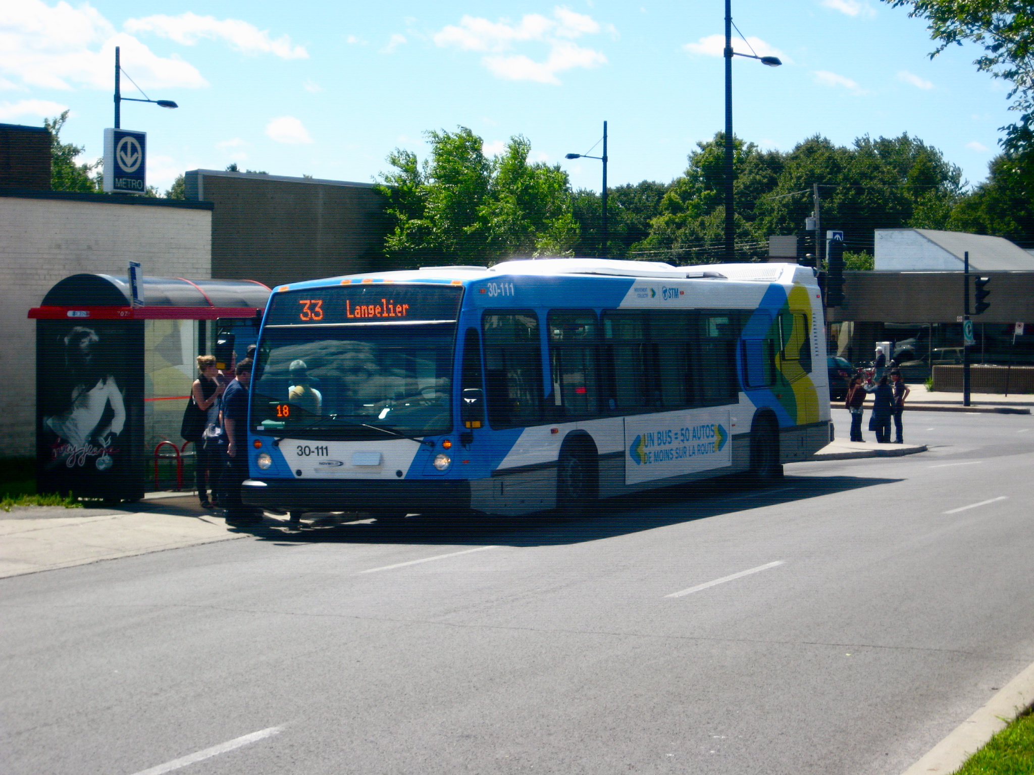 33 | 랑젤리에 | Langelier | 리비에르데프레리 병원 | ↔ | 평상시: 에밀 르그랑 / 노트르담 저녁: 엑토르 바르살루 / 드 부셰르빌 | 랑젤리에 / 레제 랑젤리에 / 모리스 뒤플레시 랑젤리에 / 르누아/Renaud프랑스어 / 앙리 부라사/Henri-Bourassa프랑스어 라코르데르 / 앙리 부라사 라코르데르 / 아모스 생레오나르-몽레알노르역 데 그랑드프레리 / 라코르데르 랑젤리에 / 쿠튀르 랑젤리에 / 봄바르디에 랑젤리에 / 로베르 랑젤리에 / 자리 랑젤리에 / 메트로폴리탄 (북쪽) 메트로폴리탄 고속도로 랑젤리에 / 메트로폴리탄 (남쪽) 랑젤리에 / 장 탈롱 랑젤리에 / 벨랑제 랑젤리에 / 보비앙 랑젤리에 / 로즈몽 랑젤리에역 랑젤리에 / 드 마르세유 에이그 / 오슐라가 에밀 르그랑 / 노트르담 (평상시) 노트르담 / 데 퓌타일 엑토르 바르살루 / 드 부셰르빌 (저녁) | 매일 상시 운행 노트르담 방면 평일 오전 6시부터 오후 2시까지, 구앵 방면 평일 오후 2시부터 9시까지 최대 10분 간격으로 운행 |