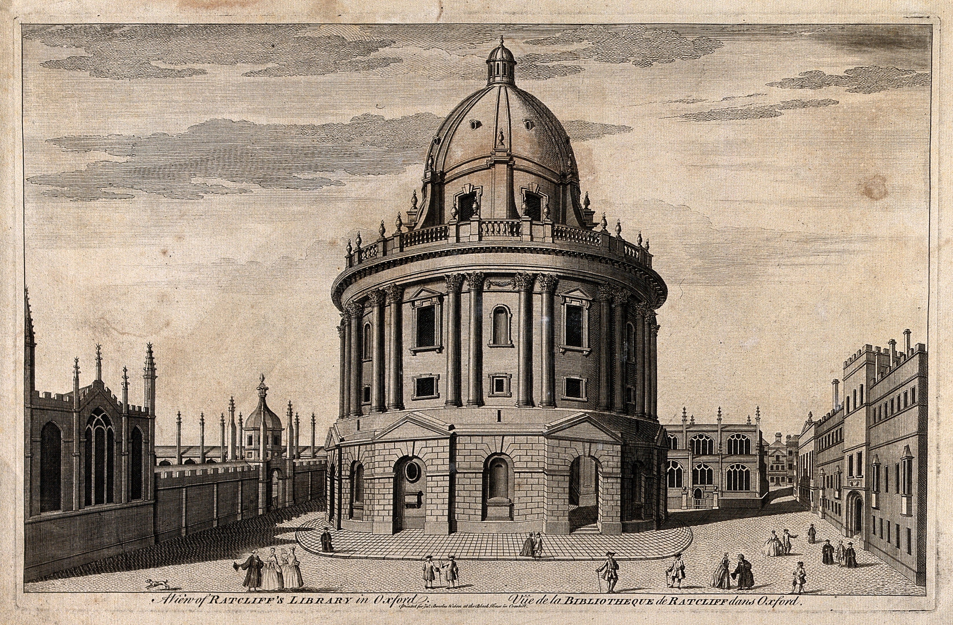 윌리엄 3세와 메리 2세 치세에 활동한 의사 존 래드클리프는 사망 2년 전인 1712년에 옥스퍼드에 신도서관 건립을 계획했다. 이는 17세기에 건립된 보들리안 도서관을 확장하는 방안으로 시작되었으나, 최종적으로는 별도의 건물로 건립되었다.[67]