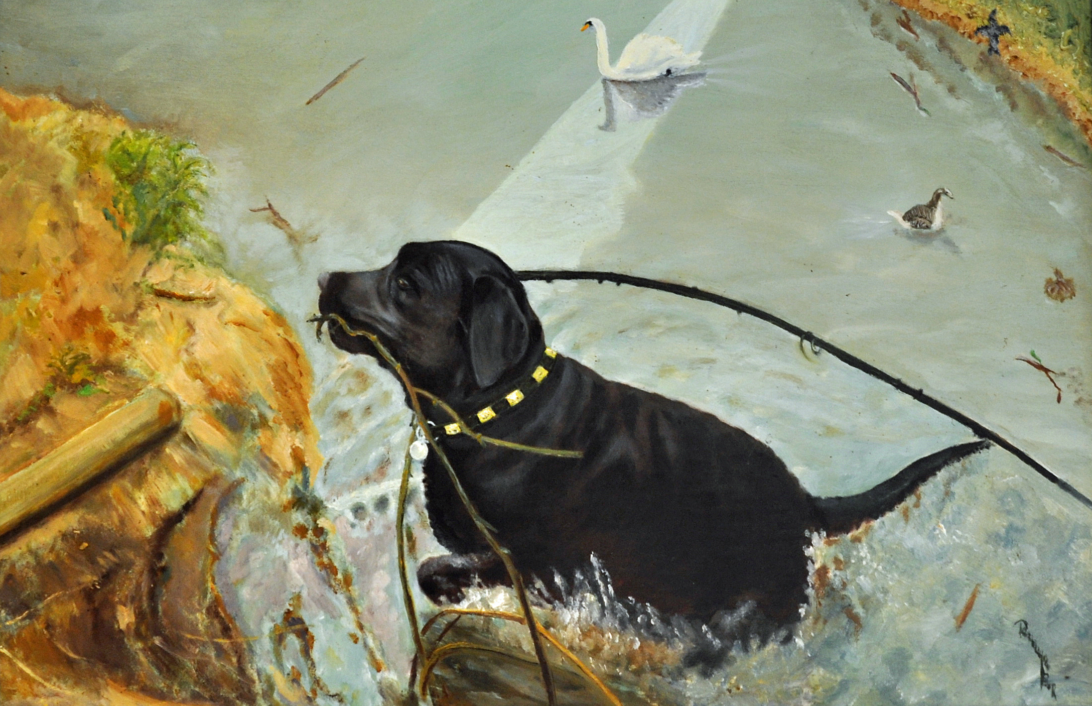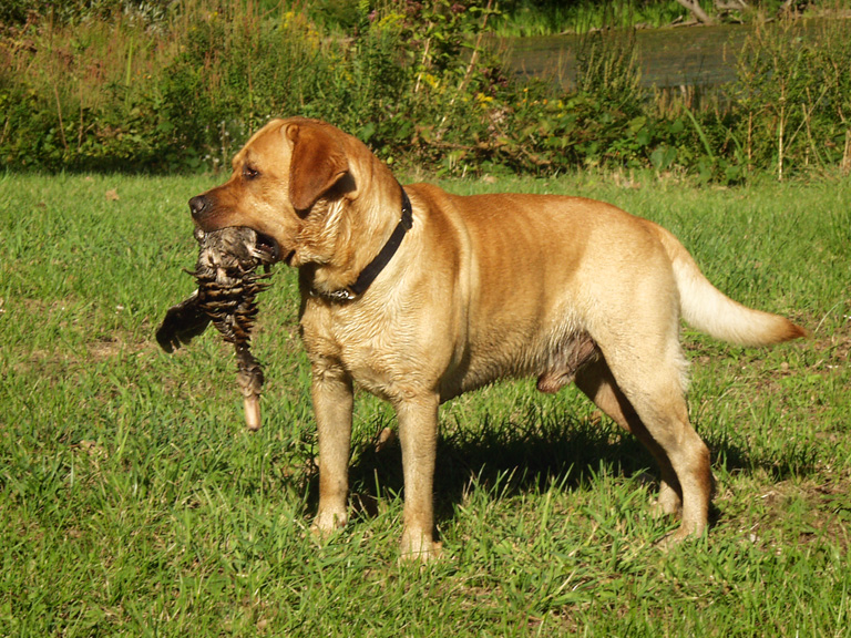 래브라도 리트리버는 특히 사냥감을 회수하는 능력이 뛰어나다. 물새를 손상시키지 않고 운반할 수 있는 '부드러운 입'이라는 특징을 가지고 있으며, 물갈퀴가 발달된 발, 수달과 같은 꼬리, 방수 코트 덕분에 수영에도 능숙하다.[37][38] 이러한 특성으로 인해 '수조류 회수의 제왕'이라고도 불린다.[109]