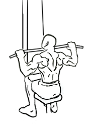 언더 그립 랫 풀 다운 | 손바닥이 자신을 향하도록 바를 잡고 수행하는 랫 풀 다운. 광배근 하부와 이두근을 더욱 자극한다. |
