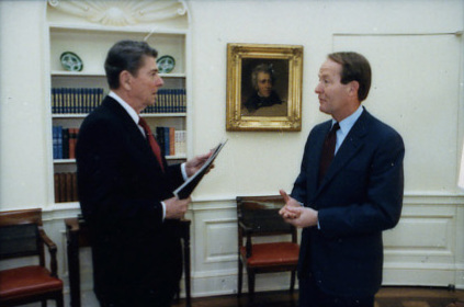 1986년 미국 대통령 로널드 레이건과 함께 있는 알렉산더