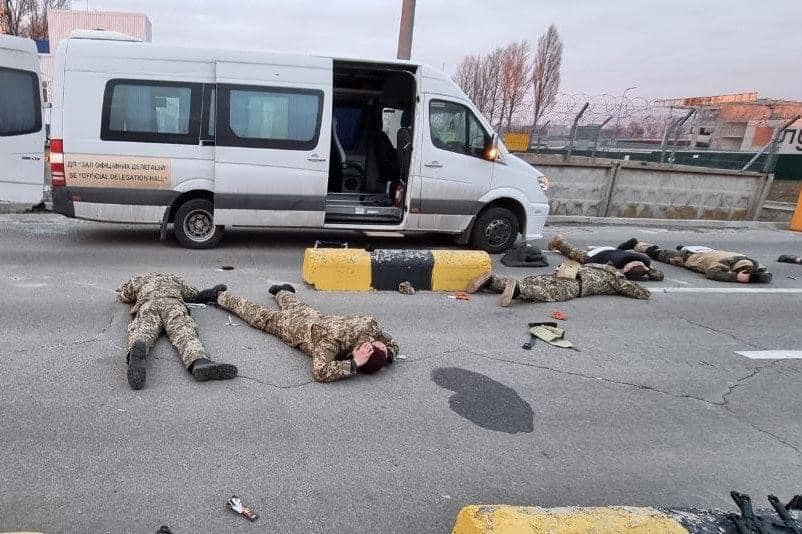 2월 28일 새벽, 우크라이나는 키이우 서부 마카리우 마을에서 러시아군 장비 대열이 파괴됐다고 밝혔다.[107] 이후 게재된 CCTV 영상에는 시민 2명(72세 남성과 68세 여성)이 마을 끝의 보그단 흐멜니츠키 거리와 오크루즈나 도로 교차로에서 러시아 보병전투차의 총격에 맞아 사망했다고 가디언이 보도했다.[108][109][110]