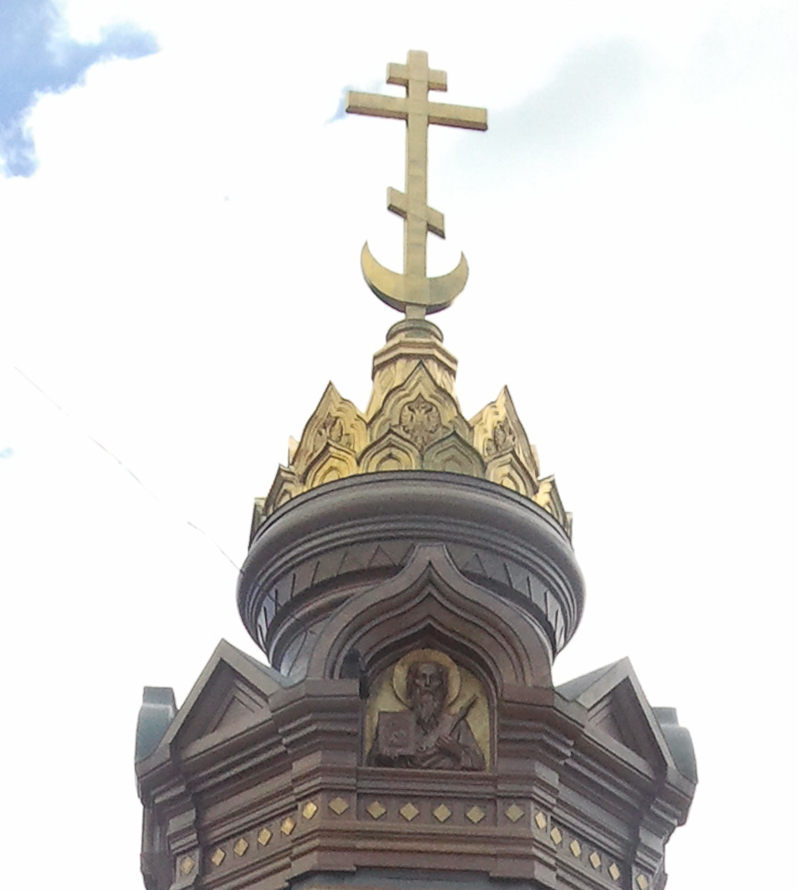 모스크바 플레브나 예배당에 있는 정교 십자가의 초승달 위의 십자가 변형