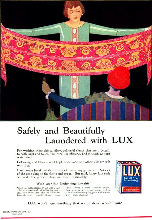 럭스는 원래 세탁용 비누로 출시되어, 초기 광고는 제품의 품질을 알리는 데 집중했고 레이디스 홈 저널과 같은 잡지에 게재되었다. 1920년대 초 이미 성공적인 브랜드였던 럭스는, 1924년 레버 브라더스가 실시한 콘테스트를 통해 많은 여성이 럭스를 미용 비누처럼 사용한다는 사실을 알게 되었다.