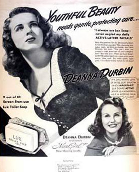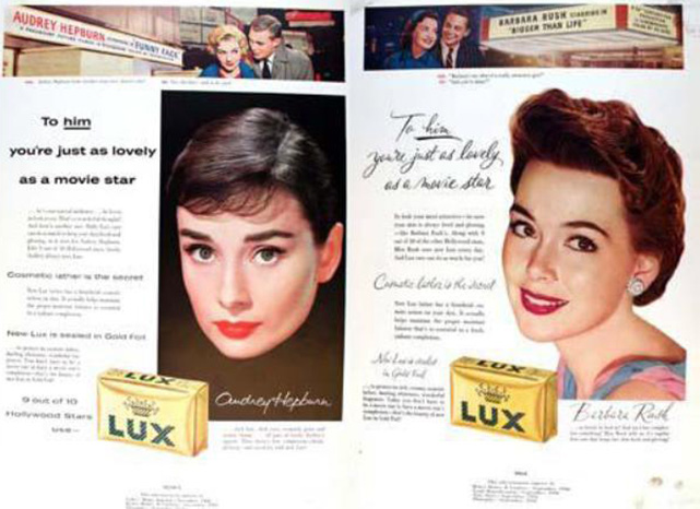 럭스는 초창기부터 할리우드 유명 여배우를 광고 모델로 활용하여 대중 영화계와의 연관성을 구축하는 데 집중했다. 1928년에는 425명의 여배우에게 제품을 보내 414명의 지지를 얻었고, 이를 바탕으로 "할리우드 스타 10명 중 9명이 럭스 비누를 사용한다"는 유명한 캠페인을 시작했다.[7][6] 이 캠페인에는 루이스 브룩스와 같은 당대 유명 배우들이 참여했으며,[8][9] 1933년에는 참여 배우 수가 694명 중 686명에 달한다고 홍보할 정도로 큰 성공을 거두었다.[10] 이러한 전략은 럭스가 세계적인 비누 브랜드로 성장하는 데 중요한 역할을 했다.[6]1931년에는 "저는 31살이 넘었습니다"라는 캠페인을 통해 상대적으로 나이가 있는 스타들이 어린 피부를 유지하는 비결에 대해 이야기하며 스킨 케어의 중요성을 강조했다. 또한 스타 인터뷰와 클로즈업 사진을 통해 소비자들이 이들을 역할 모델로 삼도록 유도하며 브랜드의 신뢰도를 높였다. 스타를 활용하면서도 광고의 초점은 점차 소비자와 그들의 삶 속에서 럭스가 하는 역할로 옮겨갔다. 예를 들어 데버러 카와 같은 유명 배우를 등장시키면서도 평범해 보이는 여성을 함께 보여주기도 했다.