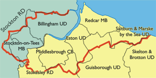 1974년 개혁으로 랭버로 자치구(Langbaurgh non-metropolitan district) 아래에 비도시 클리블랜드 카운티가 설립되었다. 이 카운티는 잉글랜드 북동부 지역에도 포함되었다. 1996년 추가적인 변경 후, 이 구역은 요크셔 노스 의식 카운티의 의식 카운티인 레드카 앤 클리블랜드라는 단일 자치구가 되었다. 이 카운티는 두 개의 지역에 걸쳐 있다.[28]