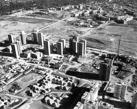 이 도시는 1970년대에 건축가 로베르 카멜롯, 프랑수아 프리에르, 조르주-앙리 펭귀송에 의해 르 코르뷔지에의 원리에 따라 구상되고 건설되었다. 타워 블록은 슬래브 위에 세워져 보행자 통로를 통해 거리 위로 접근할 수 있다. 이 도시에는 북쪽에 대규모 도시 공원이 있다.