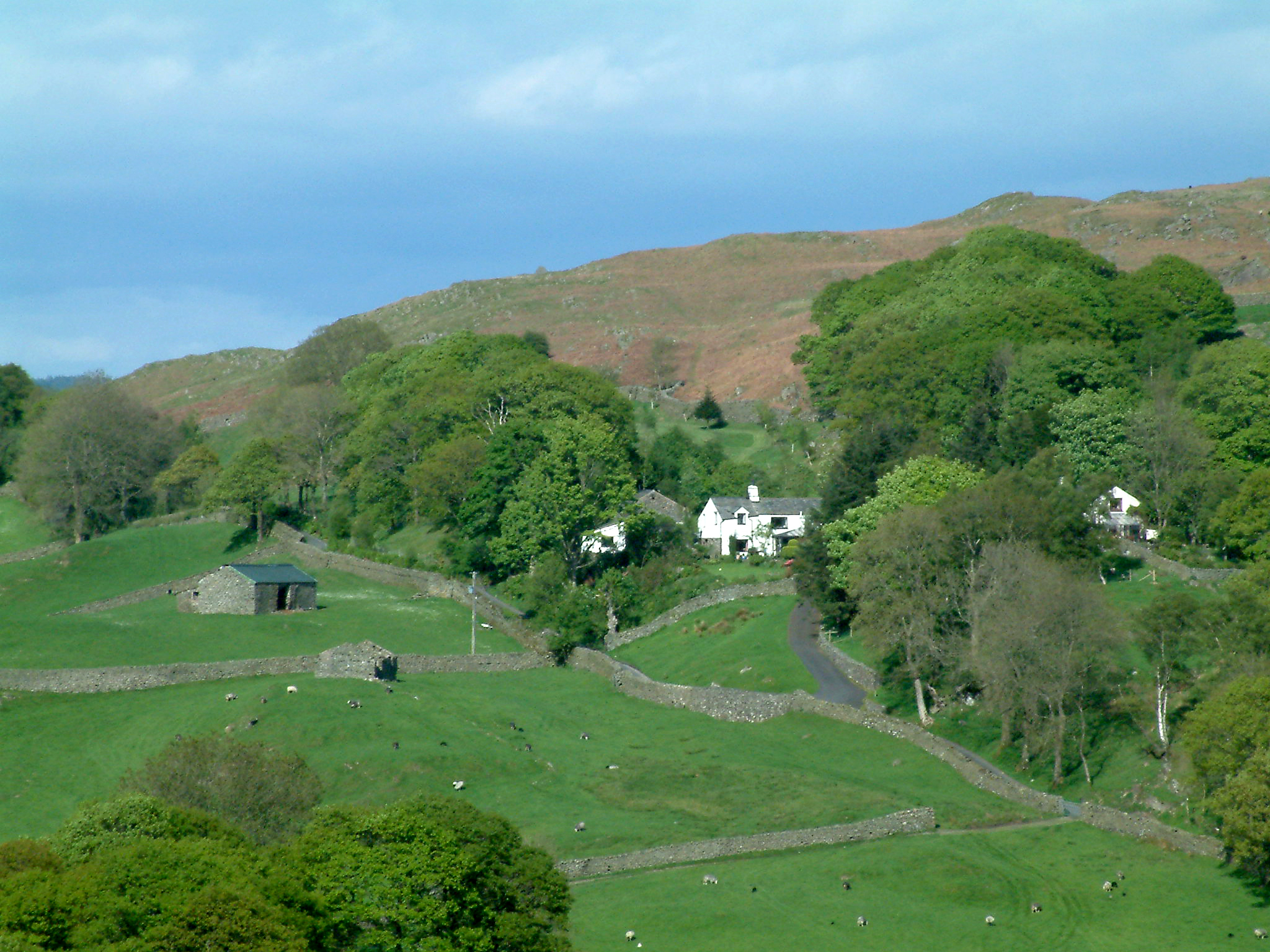 - 이스턴 펠스(Eastern Fells): 클러프 헤드에서 시트 샌달까지 남북으로 길게 뻗은 능선, 헬벨린 산군으로 구성되어 있으며, 최고 지점은 950m의 헬벨린이다. 이 봉우리들의 서쪽 사면은 풀이 우거져 있으며, 동쪽에는 바위 권곡과 절벽이 있다. 페어필드 산군은 이 산군의 남쪽에 위치하며, 패터데일 계곡으로 쏟아지는 우뚝 솟은 암벽과 숨겨진 계곡과 비슷한 패턴을 형성한다. 이 산군은 커크스톤 고개를 내려다보는 레드 스크리스의 높이에서 절정에 달한다.