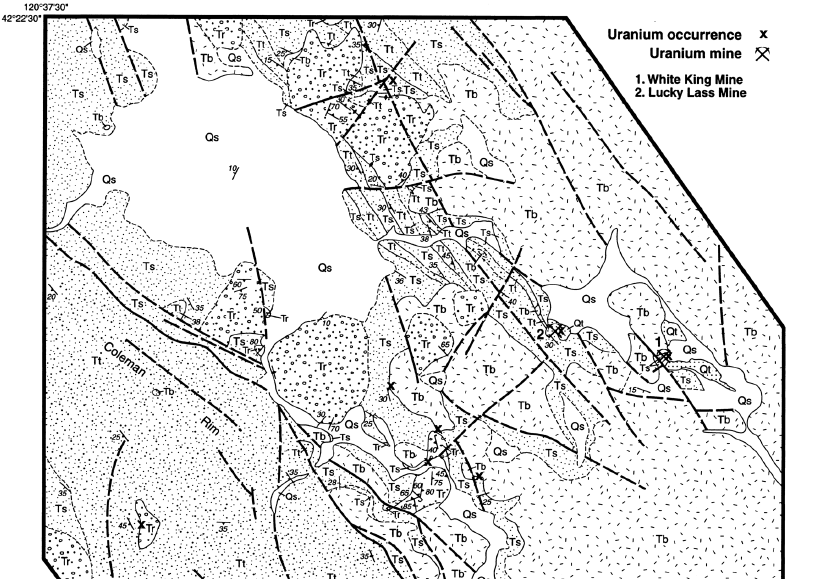 1950년대 중반, 우라늄 채굴 권리가 레이크뷰 북쪽 산에 출원되었다. 그러나 ''화이트 킹''과 ''럭키 래스'' 두 개의 광산만 개발되었다. 1958년, 레이크뷰 광산 회사 우라늄 처리 공장이 레이크뷰 외곽에 건설되었다. 이 공장은 매일 210ton의 우라늄 광석을 처리할 수 있는 능력을 갖추고 있었다. 이 공장에는 50명이 고용되었고, 두 개의 광산에는 120명이 더 고용되었다.[31] 이 우라늄 공장은 1961년에 폐쇄되었다.[32]