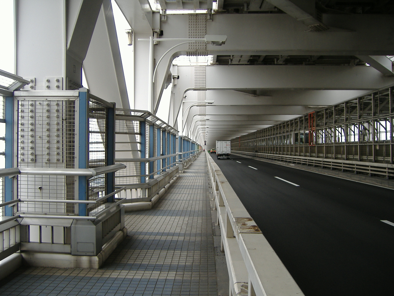 상층부는 유료인 수도고속도로이지만, 하층부는 무료로 통행 가능한 일반 도로이다. 하층부는 유리카모메 궤도 때문에 진행 방향 오른쪽 경치는 보이지 않고, 왼쪽도 교각과 펜스 때문에 전망이 좋지 않다. 하층부에는 도영 버스(시나가와 동쪽 출구 - 도쿄 텔레포트 역)가 운행하지만, 다리 중간에는 정류소가 없다.