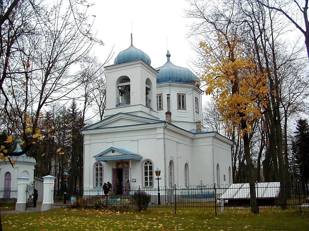 타일 난로, 타일 바닥, 3층 이코노스타시스 그리고 화강암 현관이 교회를 장식했다. 알렉산드르 2세가 죽음에서 구출된 것을 기념하는 작은 석조 예배당이 교회 입구 왼쪽에 위치해 있다. 오른쪽에는 교회의 설립자이자 아다모바 영지의 소유주인 카라우로프 장군과 그의 아내 헬렌이 묻힌 유리 묘실이 있다.[1]