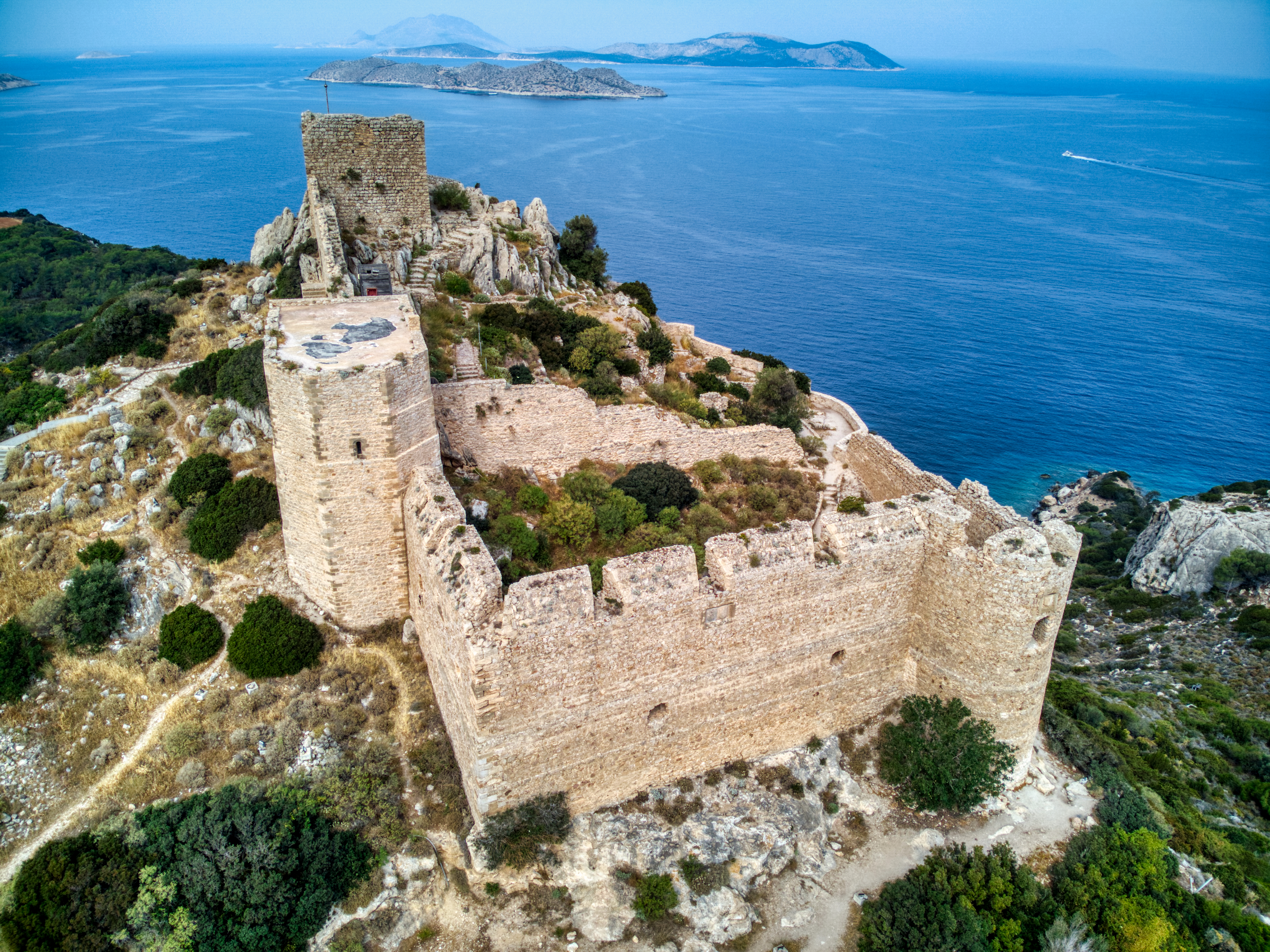 카스텔로리조섬은 터키 해안 근처 지중해 동부에 위치한 그리스 섬으로, 석회암 지질과 지중해성 기후를 보이며, 도리아 그리스 시대부터 다양한 지배를 거쳐 1947년 그리스에 귀속되었고 영화 촬영 이후 관광지로 발전했다. - 도데카니사 제도 - 칼림노스섬