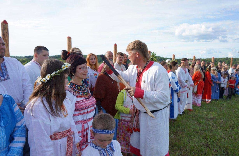 의례는 정화된 장소에서 일어나며 일반적으로 불을 지피는 것(''vozzhiganie ognia''), 신을 부르는 것, 찬송가를 부르는 것, 희생(''prinesenie treby'') 및 제물을 붓는 것, 원무(''khorovod'' 또는 간단히 ''kolo'', "원"), 그리고 일반적으로 마지막에 공동 식사를 포함한다. 원무는 ''Prav'' (상위 세계)의 신에게 헌정된 의례에서는 시계 방향(''posolon'', 즉 해 방향, 오른쪽 방향)일 수 있고, ''Nav'' (하위 세계)의 신에게 헌정된 의례에서는 시계 반대 방향(''protivosolon'', 즉 뒤쪽 방향, 왼쪽 방향)일 수 있다.