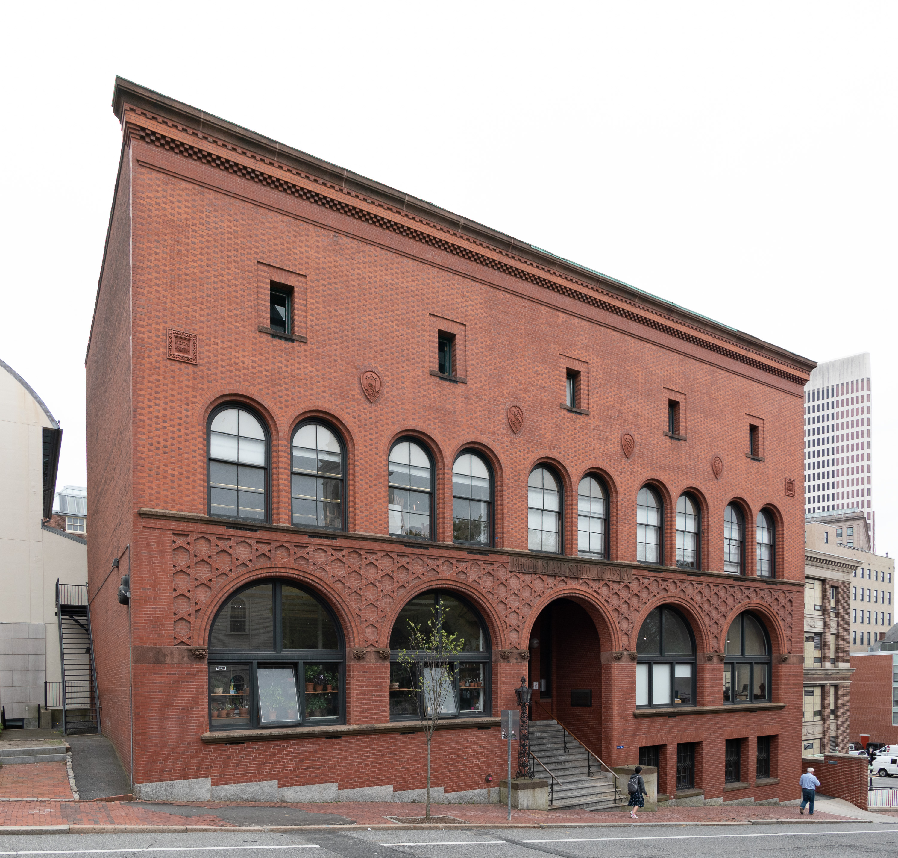 RISD는 개교 후 처음 15년 동안 프로비던스 시내의 호핀 홈스테드 빌딩 4층에 있는 6개의 방을 사용했다. 1893년 10월 24일, 학교는 칼리지 힐의 11 워터만 스트리트에 새로운 벽돌 건물을 헌정했다. 호핀, 리드 & 호핀이 설계한 이 건물은 학교의 첫 번째 영구적인 보금자리가 되었다.[15]