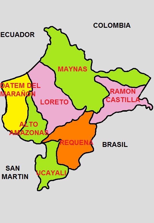 프로빈시아 (행정구) | 마이나스 알토 아마소나스 로레토-나우타 레케나 우카얄리 마리스칼 라몬 카스티야 다템 델 마라뇬 푸투마요 |