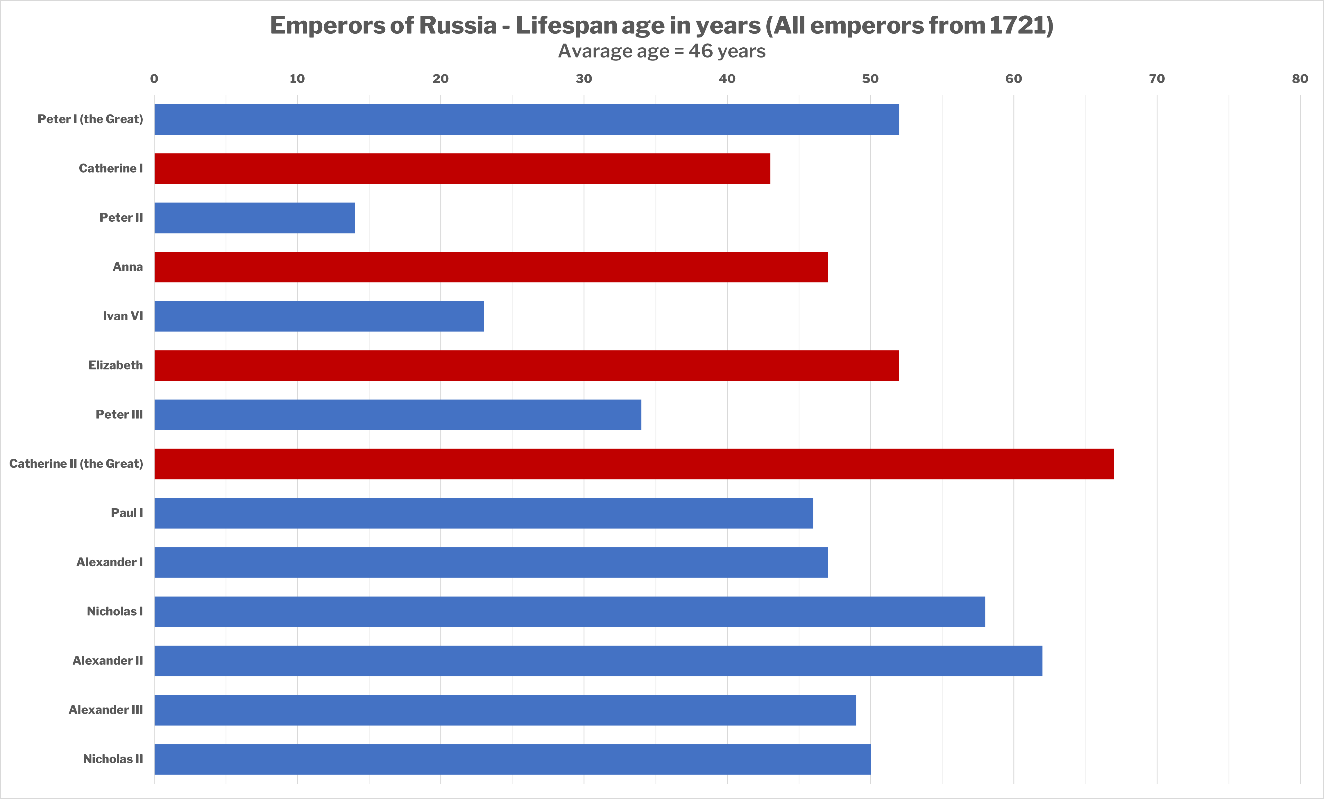 표트르 대제의 이복형제 이반 5세의 딸인 안나 이바노브나가 뒤를 이어 즉위했으나, 1740년 사망하면서 자신의 증손자 이반 6세를 후계자로 지명했다. 이는 표트르 대제의 후손을 배제하고 자신의 아버지 혈통을 유지하려는 시도였다. 그러나 이반 6세는 즉위 당시 한 살이었고, 그의 부모는 독일 출신이라는 이유로 백성들의 미움을 받았다. 결국 표트르 1세의 딸 엘리자베타 페트로브나가 쿠데타를 일으켜 이반 6세를 폐위시키고 즉위했다.[7] 이반 6세는 1764년 투옥 중 살해되었다.[7]